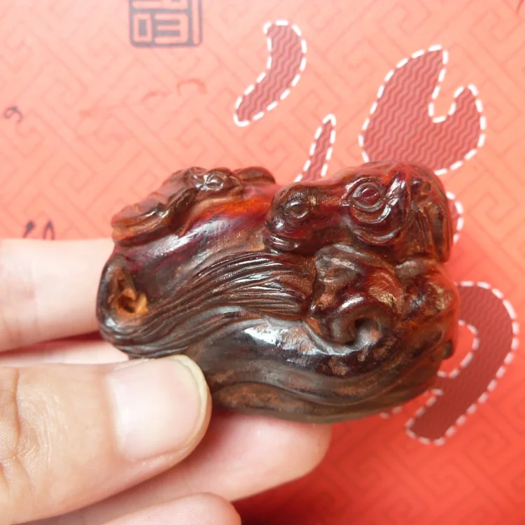 Natural mahogany black acid wood carving horse bat (immediately blessed) wooden carving ornaments d