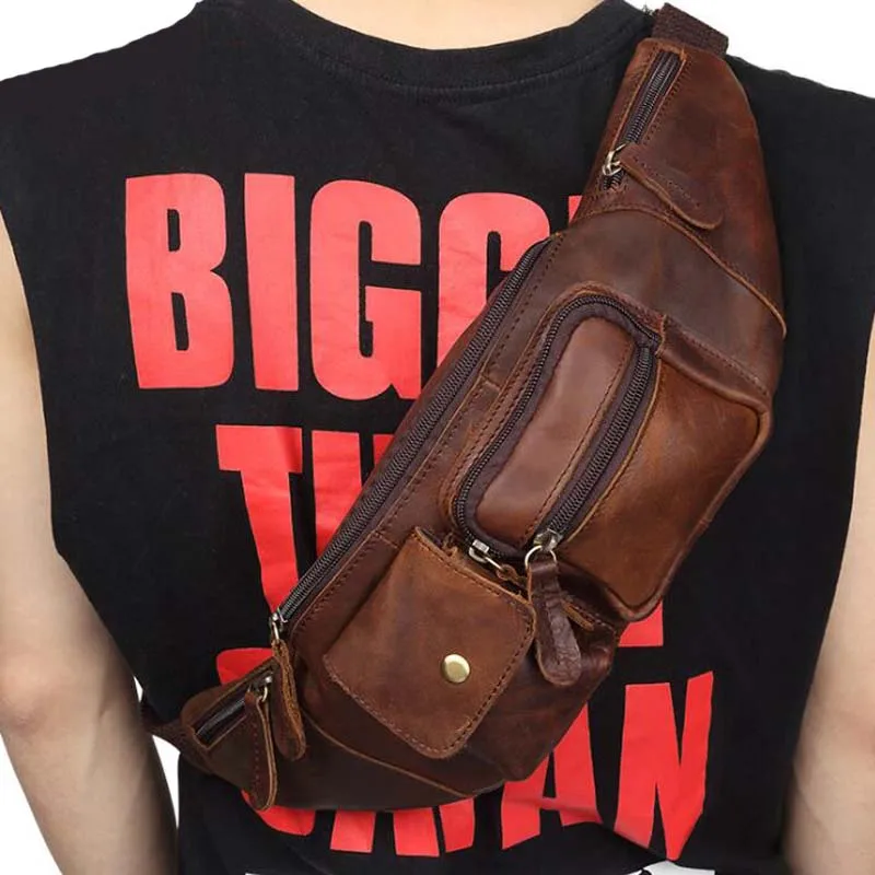 HIGH QUALITY Cool Leather Waist Bag & Chest Bags Casual Out Casual Unisex Leather Bags Crazy Horse Multi Pocket